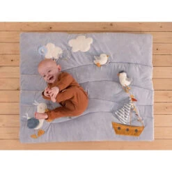 Do you see the seagull on the sailboat? Find the pelican that’s ready to scoop up fish from the water. There are lots of different materials and activities to explore, such as a mirror, squeaky and crinkly toys.