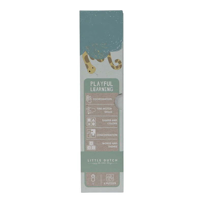 The animal puzzle is a great starter puzzle for kids aged 2 and over. The box contains 6 puzzles with 6 examples of each charming animal. They consist of 3 to 5 puzzle pieces, which allow your child to develop fine motor skills and puzzle skills step by step.