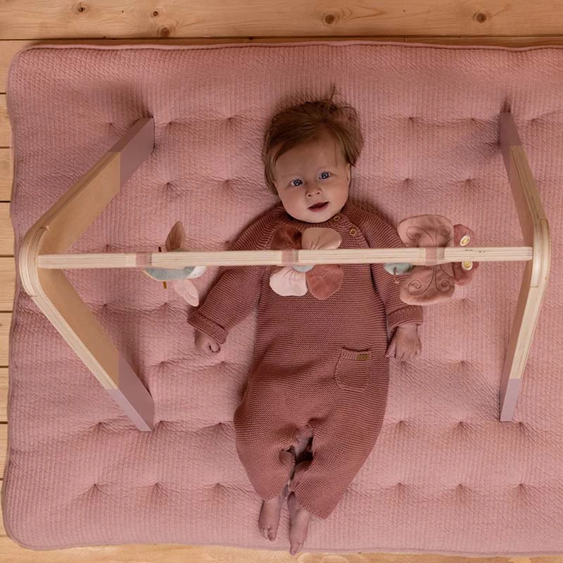 The complete Little Dutch baby gym is made of sturdy wood and comes with three toys. These colorful toys of happy aquatic animals have different textures and stimulate babies to touch and discover them. The baby gym promotes hand-eye coordination and stimulates the senses. Â