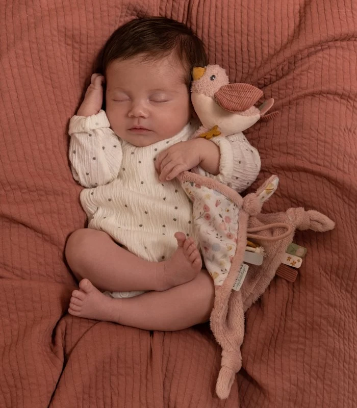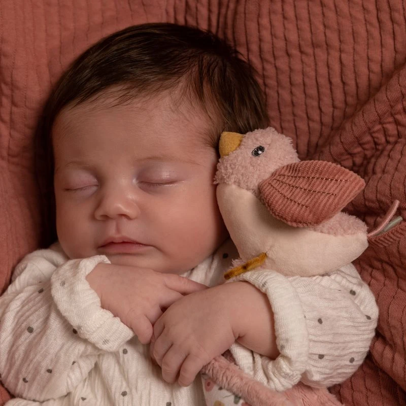 Soft and sweet. No child’s room is complete without a comforting cuddle cloth within reach. That immediately makes it an ideal maternity gift. This version of Little Dutch is decorated with our new Flowers & Butterflies print. The cuddle cloth soothes and helps a little one to fall asleep. It features a soft birdie, easy-grip buttons and fun labels to discover. Oh, and you can easily attach a pacifier or teether to the cotton loop.