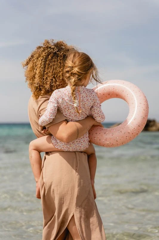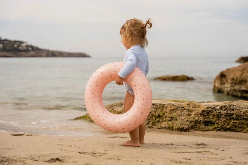 Are you ready to get active in the water? This long-sleeved swimsuit of recycled polyester will keep you warm in the water and protects you from the sun while you play all day long. Whether you love to surf the water or float around in a swim ring, this one-piece suit is the perfect choice for summer activities at the seashore. In blue and covered with the Daisies design, this long-sleeved swimsuit with ruffles at the bottom is not just pretty, it’s comfortable and practical too with the zipper on the back. It is made from UV protective fabric and is available in sizes 62/68, 74/80, 86/92 and 98/104. Pair with a beach poncho and a swim ring and you have all the essentials you need for the beach. Don’t forget to always use sunscreen lotions to protect your little one.