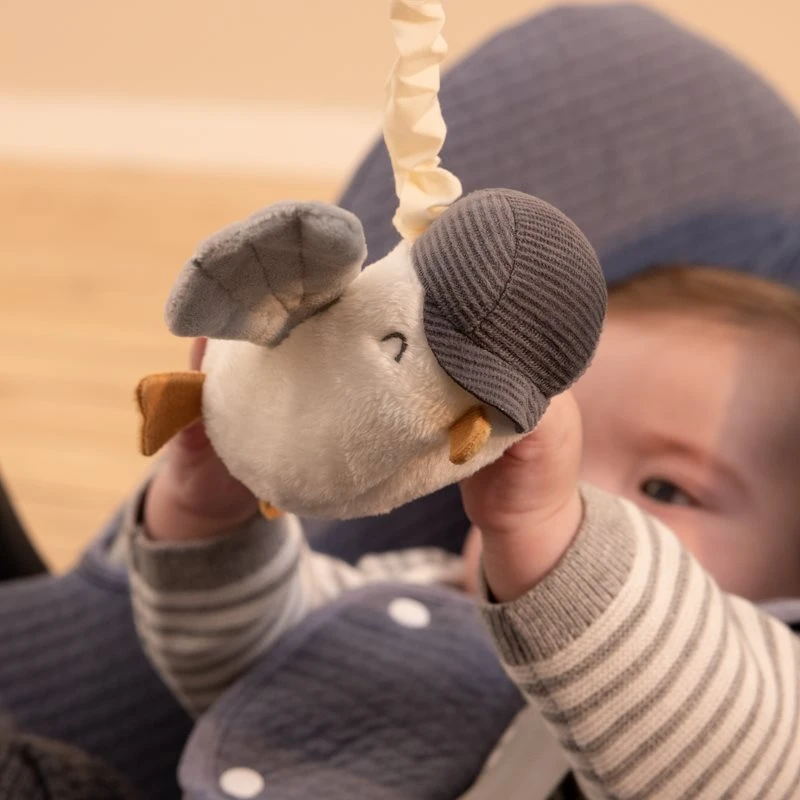 Dance, dance, dance! This tough seagull loves to move. Pull his body down and he will vibrate and shake his way up. Enriched with different colors and textures, this rabid dancing gull is sure to grab your baby’s attention.