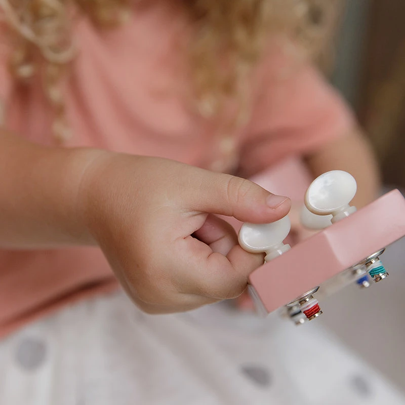 This cute guitar is a wonderful instrument to accompany children on their journey to become a singer-songwriter! They will be singing along as they play the guitar, which stimulates their creativity and coordination skills. Strike the right chords and develop your musical talent!