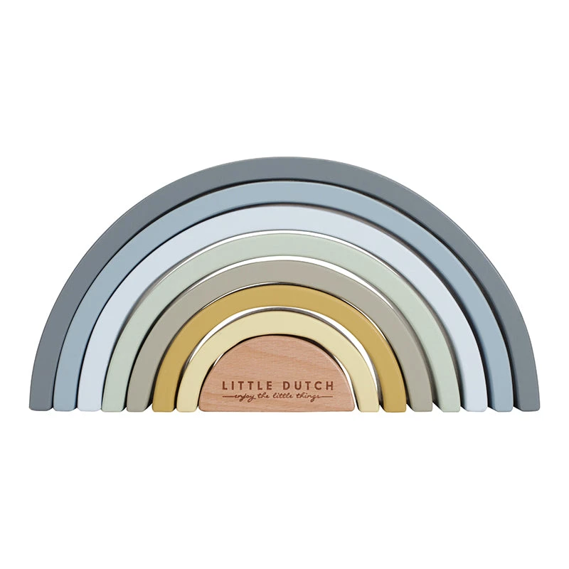 This wooden rainbow is a stacking tower in the shape of a beautiful rainbow. Children can use these semi-circular shapes to play and learn at the same time. They can stack the arches or use their imagination to make all kinds of creations, like a train tunnel, a house for little dolls or bridges for small cars. There are endless possibilities!