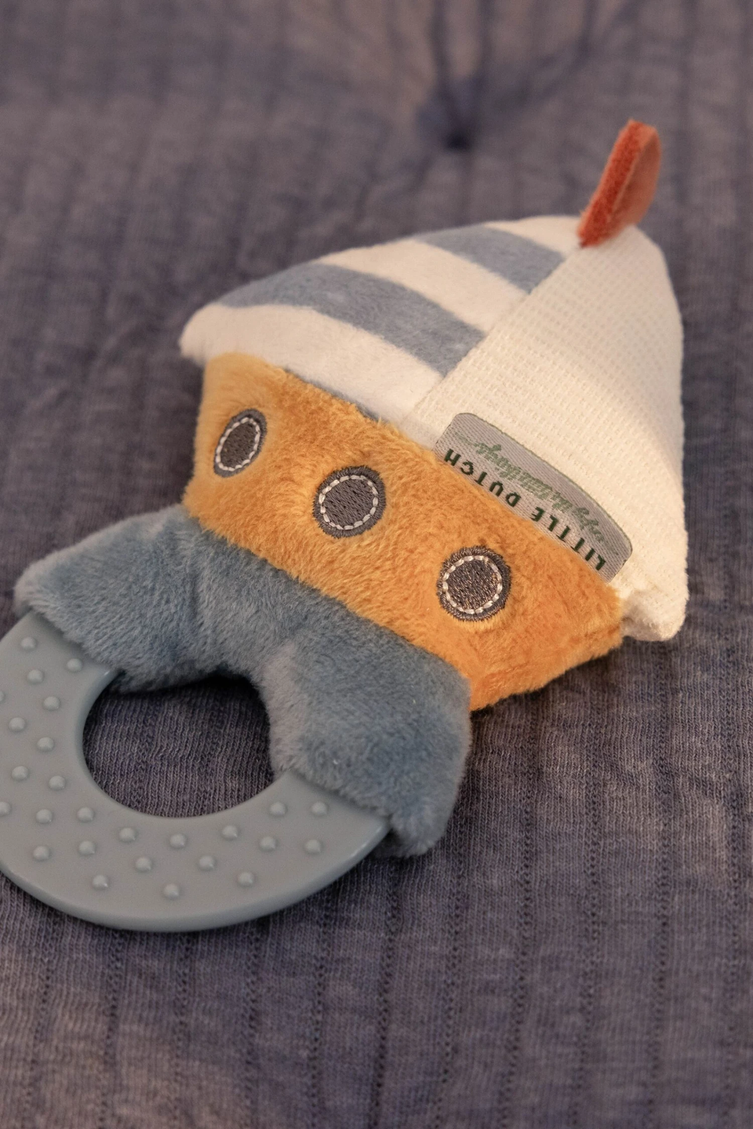 Our favourites of the Sailors Bay collection make the perfect gift for a newborn or baby shower. This lovely box includes three soft items to snuggle, hug and play with. The cuddle cloth with a soft seagull is wonderful to snuggle with, but is also fun to use for a play of peek-a-boo. The cuddly toy of seagull Jack is always in for a hug and will never leave the baby’s sight. To play, this set includes a teething ring with a soft rattling sailboat that promotes the hand-eye coordination and stimulates the baby’s curiosity. The ring will also provide soothing comfort when a baby’s first teeth starts to appear. All three items packed in one beautiful gift box.
