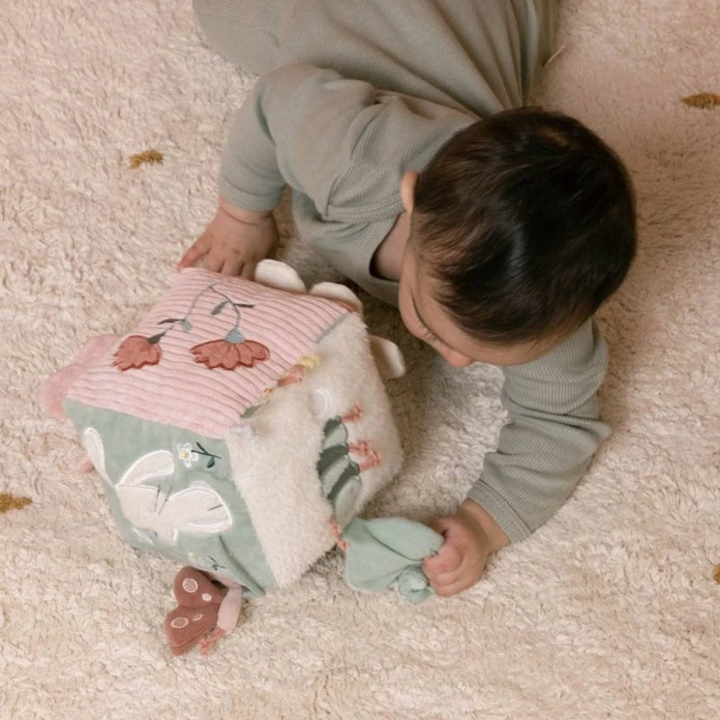 Explore nature with little bird Abby and her friends. Rendered in an array of appealing hues, this super-soft Activity Cube will trigger your baby’s curiosity.