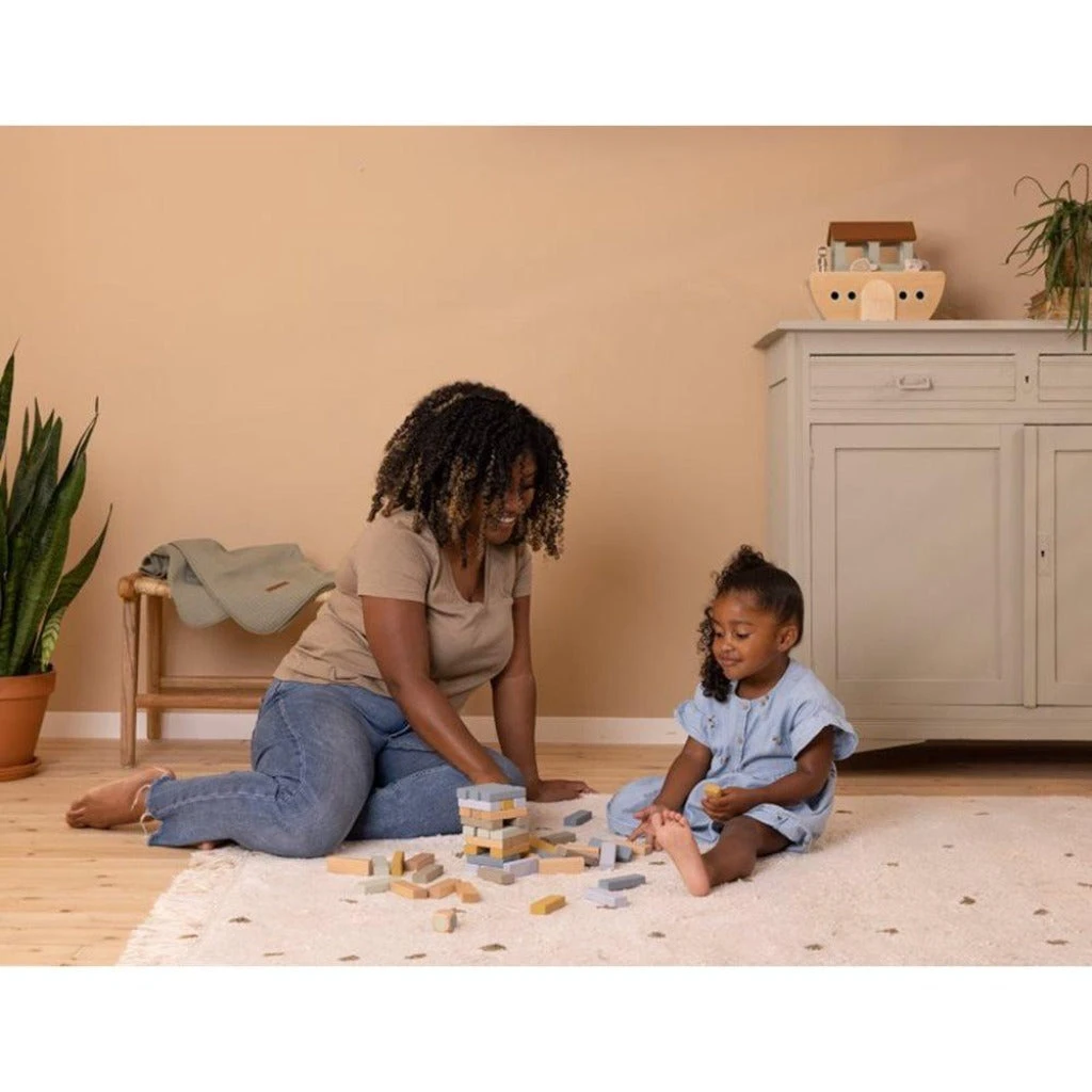 How tall can you stack a tower of colourful wooden blocks until it falls? This Little Dutch wooden stacking blocks game makes for a great activity that the whole family will love. The game improves your child’s hand-to-eye coordination and increases his or her fine motor skills.